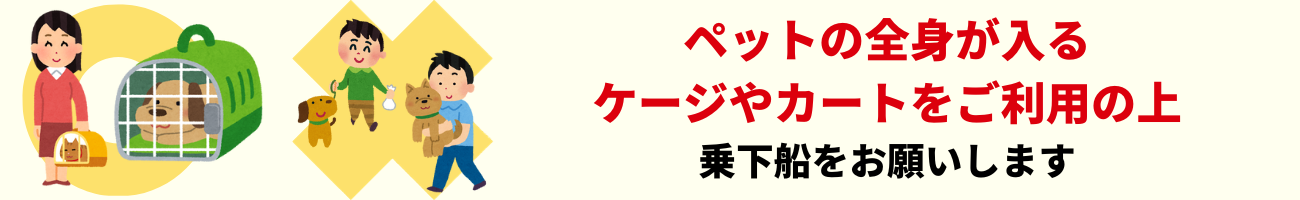 ●乗下船時は、必ずペットの全身が入るケージ・カートに入れてお運びください。