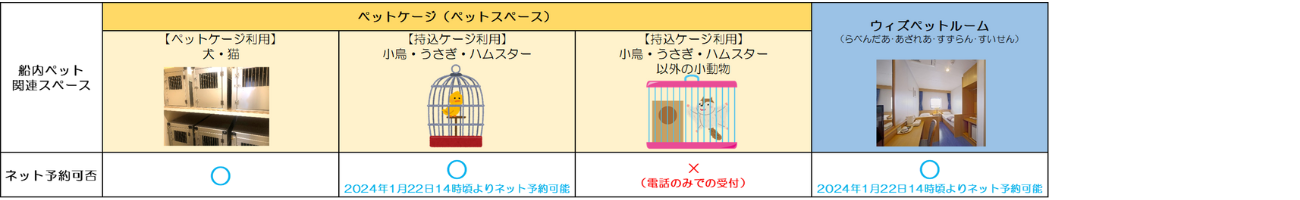 インターネットにてウィズペットルーム・ペットケージ・小動物持込ケージ(小鳥・うさぎ・ハムスターに限ります)のご予約と空席・運賃照会が可能です。ぜひご利用ください。