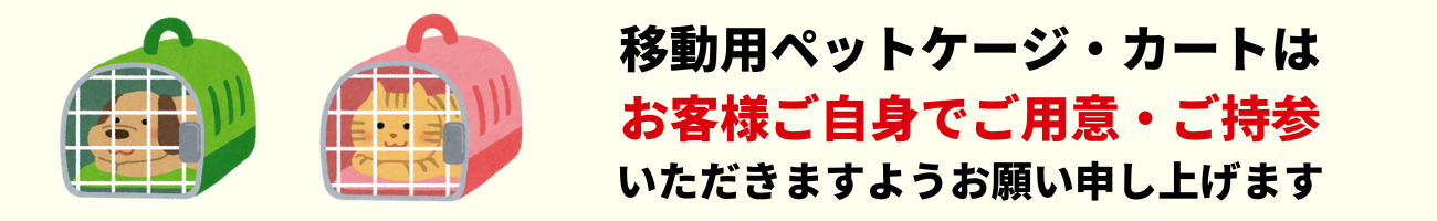 移動用ペットケージ・カートはお客様ご自身でご用意・ご持参いただきますようお願いいたします。