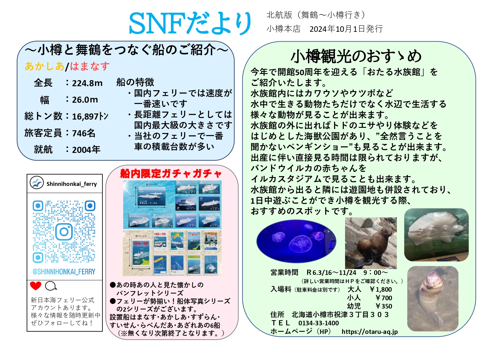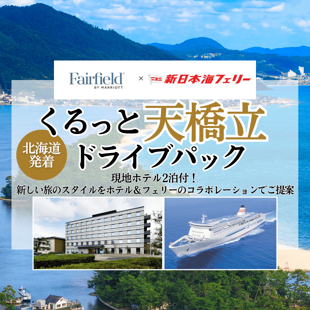 船旅プランとおすすめ情報 2020/1/9 ホーム あなただけのひとときが見つかります 船旅を楽しむためのプランやモデルコースなど船旅に役立つおすすめ情報をご紹介します。 おすすめ情報 パッケージツアー モデルコース デジタルパンフレット おすすめ情報 おすすめ情報 乗船時のご案内 乗船前にご確認をお願いします。 イベント情報 大海原で幸運を掴め!!船上ビンゴ大会限定開催!! 大人気イベントを10月に限定開催♪ イベント情報 秋の船内イベント情報! 10月のイベント情報を更新しました♪ おすすめ情報 フェアフィールド・バイ・マリオット×新日本海フェリーコラボ企画くるっと天橋立ドライブパック 2024.10.01 - 2024.11.30 日本三景『天橋立』へ、フェリー&ホテルのセットプランをご提案☆ 一覧をみる パッケージツアー 個人プラン 北海道発【4年に1度の逆打ち】四国八十八カ所ドライブパック 2024.09.01 - 2024.11.30 出発地:小樽港、苫小牧東港 到着地:舞鶴港、敦賀港 4年に1度の逆打ちで功徳3倍!!! 一覧をみる モデルコース 北海道 道南の函館・松前たっぷりドライブ 出発地:函館・松前 道南の観光名所をおさえた、たっぷり北海道を楽しめるドライブコースです 本州 北東北漫遊ドライブ 出発地:北東北 秋田港を起点に、北東北の文化・自然・温泉を堪能! 一覧をみる デジタルパンフレット 「夢人旅」~ゆめひとたび~ 夢と人、そして旅をつなぐ。船旅にゆたかさと彩りを添えるとびっきりの情報をお届けします。 船内案内紙 各船に設置の船旅案内誌です。寄港地のスタッフおすすめの情報を掲載しております!