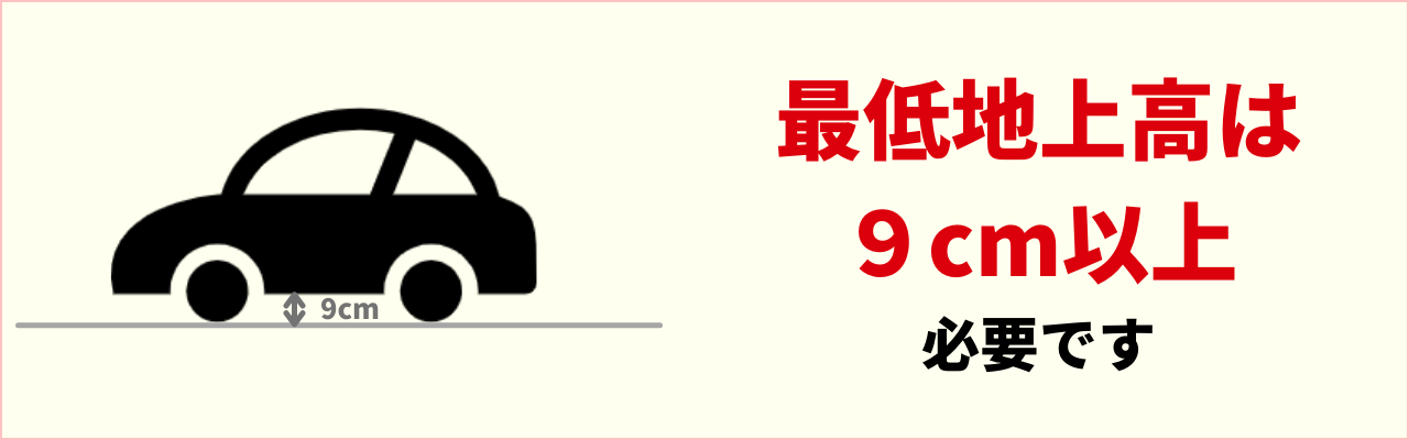 お車の最低地上高は9cm以上必要です