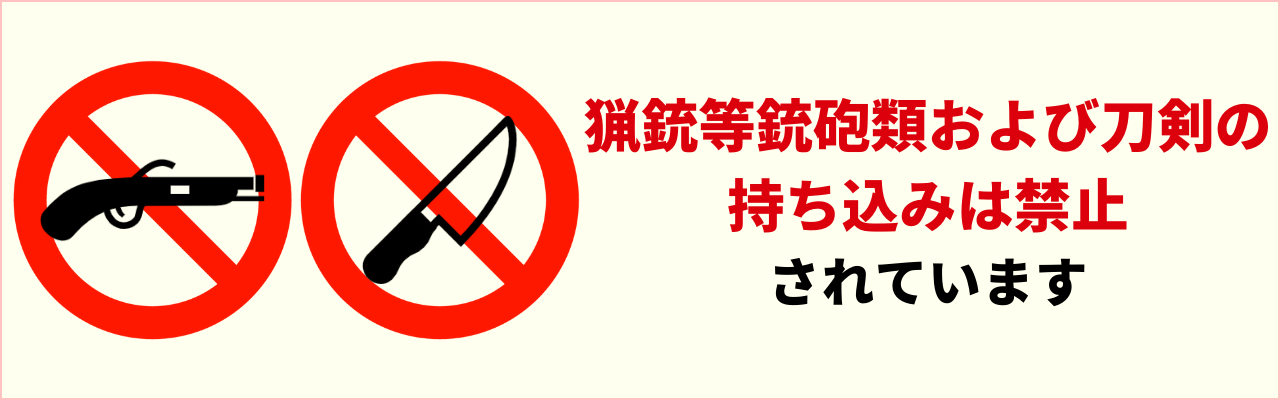 猟銃等銃砲類及び刀剣を船内に持ち込むことはできません