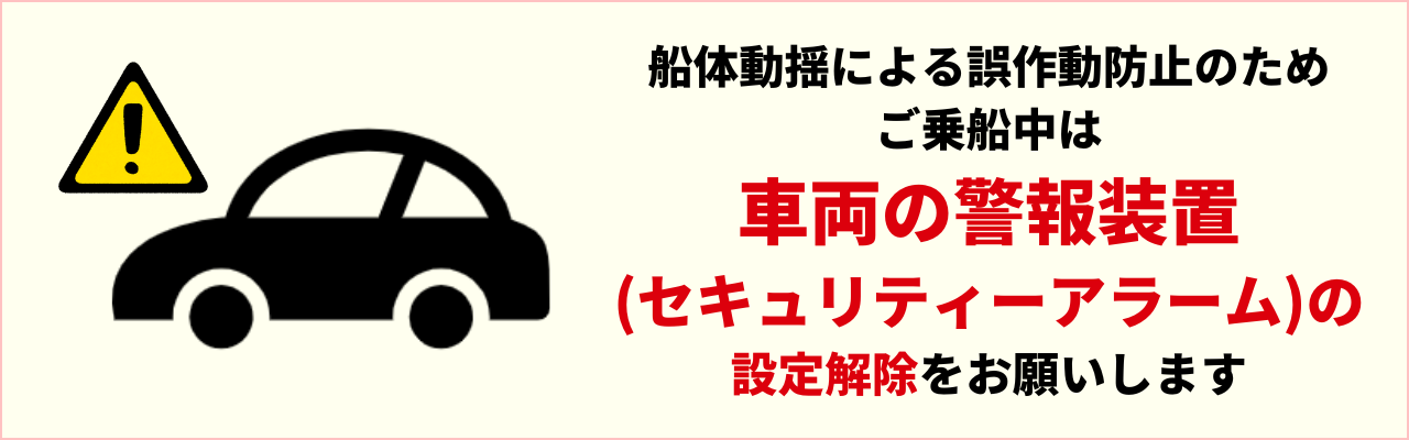乗船中は予め警報装置(セキュリティアラーム)の設定解除をお願いします。
