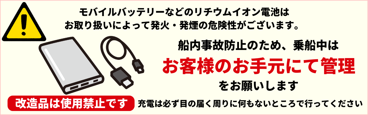 船内事故防止のため、乗船中はお客様のお手元にて管理いただき