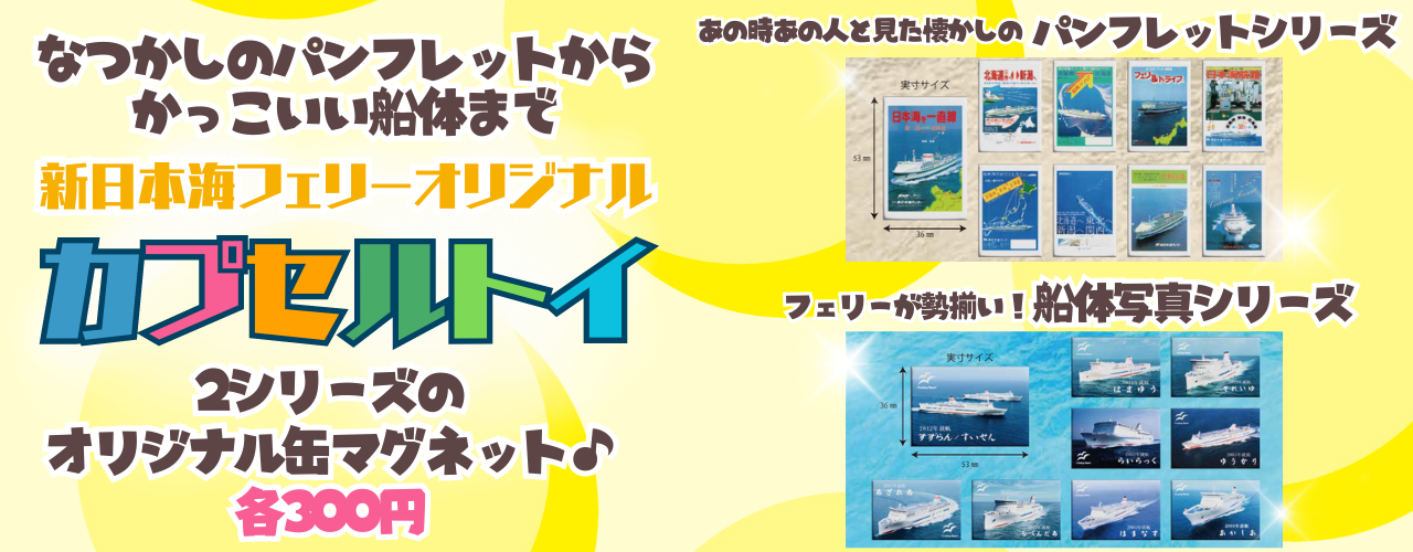新日本海フェリー歴代パンフレットが缶マグネットに♪