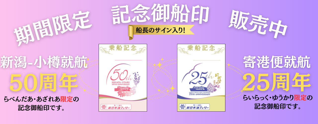 新潟-小樽航路就航50周年、寄港便就航25周年を記念した限定御船印が出ました!