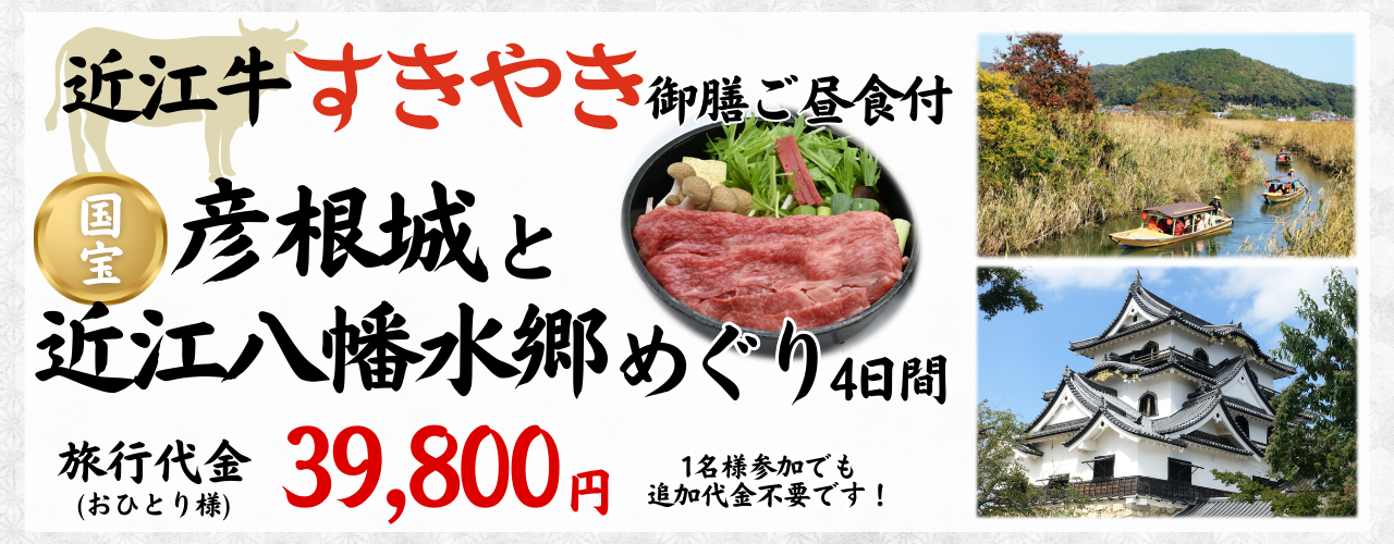 《小樽発着団体ツアー》近江牛すき焼き御膳も♪『彦根城』と近江八幡水郷めぐり4日間