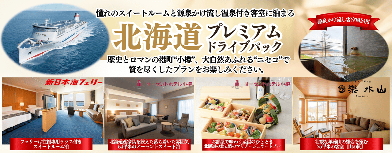 新日本海フェリー、オーセントホテル小樽、ニセコ羊蹄の宿 楽 水山で過ごすプレミアムなひととき。ぜひご利用ください!