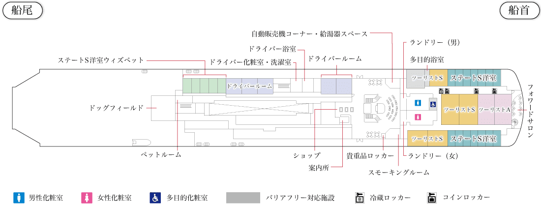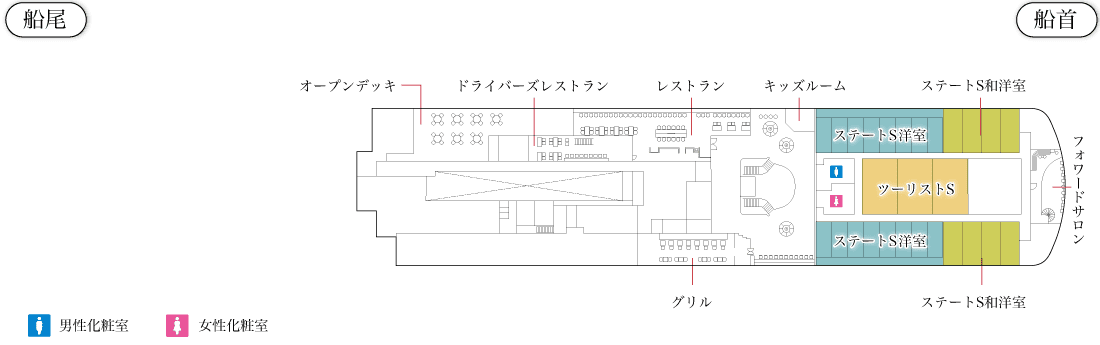 ホーム 6F 5F 4F 印刷用PDF ▲ ▼ 【けやき】デッキプラン 2025/6/23 6F 拡大表示する 赤文字の施設をクリックすると詳細を確認できます 閉じる 5F 拡大表示する 赤文字の施設をクリックすると詳細を確認できます 閉じる 4F 拡大表示する 赤文字の施設をクリックすると詳細を確認できます 閉じる 客室紹介 船内施設紹介 船舶一覧