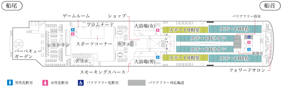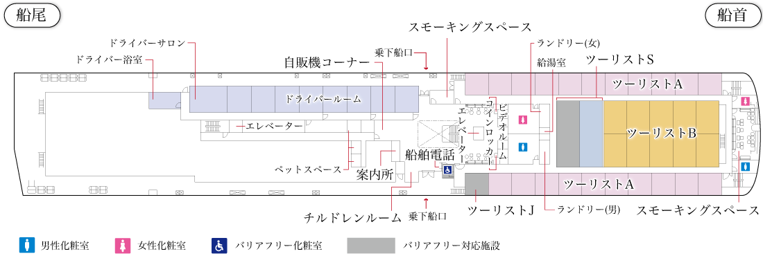 ホーム 5F 4F 3F 印刷用PDF ▲ ▼ 【らいらっく/ゆうかり】デッキプラン 2020/3/19 5F 拡大表示する 赤文字の施設をクリックすると詳細を確認できます 閉じる 4F 拡大表示する 赤文字の施設をクリックすると詳細を確認できます 閉じる 3F 拡大表示する 赤文字の施設をクリックすると詳細を確認できます 閉じる 客室紹介 船内施設紹介 船舶一覧
